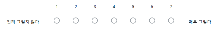 주로 5점이나 7점으로 구성되어있습니다. 즉 점수가 구체적으로 나눠진 정량적 척도죠