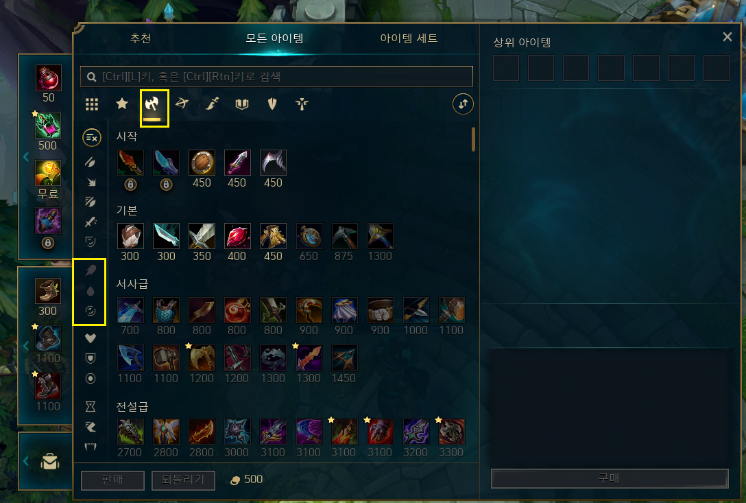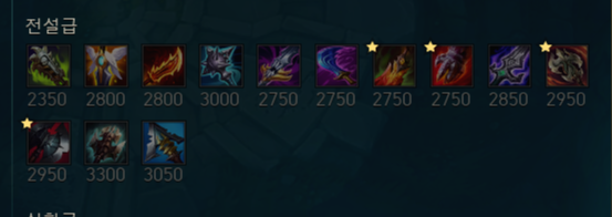 위 글처럼 신화급 아이템을 구매하면 전설급 아래의