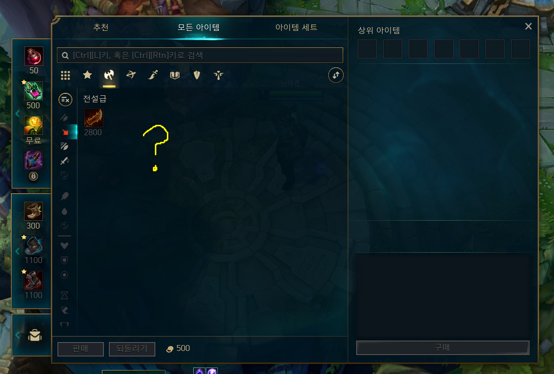 2. 전설급 아이템은 하나만 살 수 있는 거 언제! 누가 알려줬어? 가이드 부족