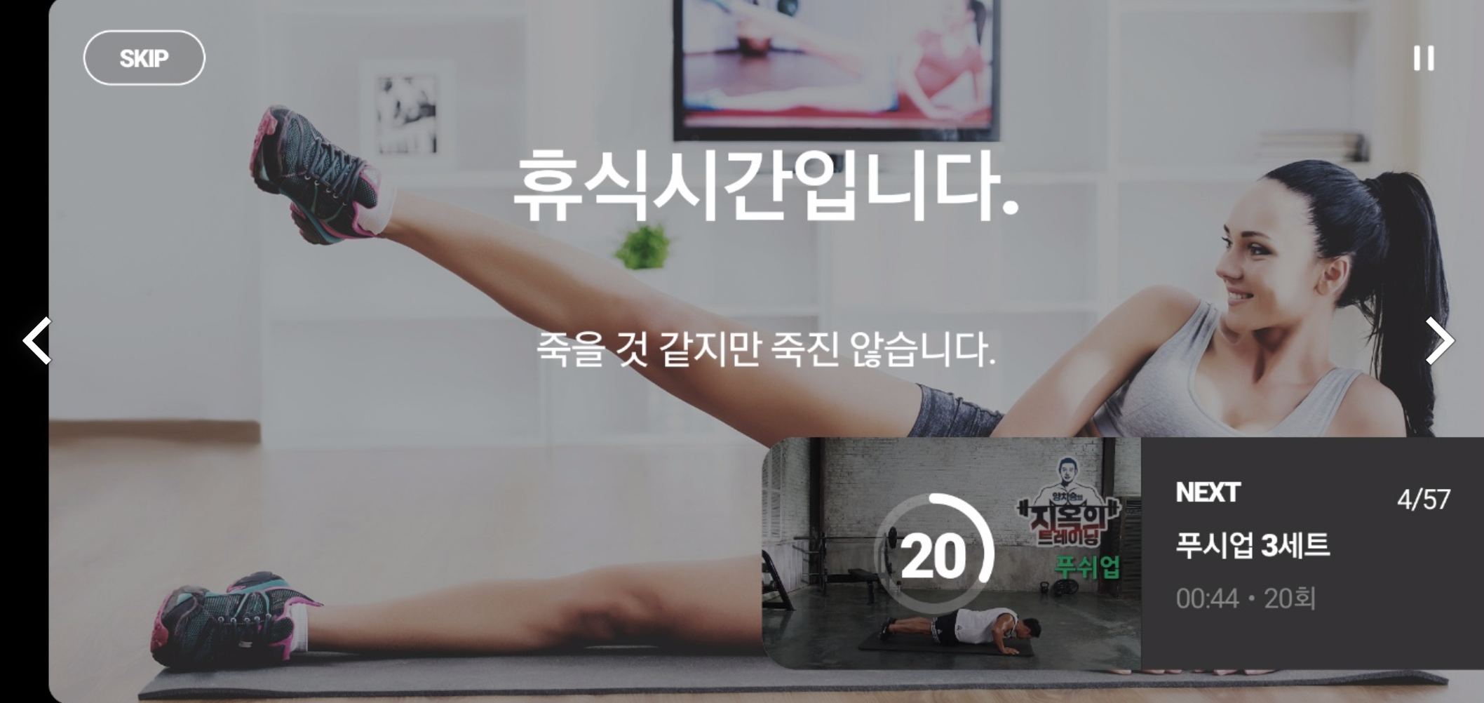 운동하는데 필요 없는 휴식시간이 너무 길게 느껴졌습니다.