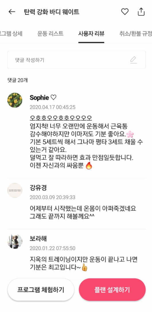 - 운동 프로그램 사용자 리뷰
